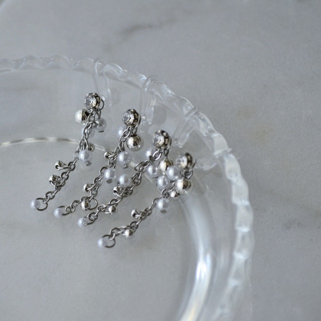 • Drops Silver × Pearl Earrings ≈≈ non hole piece