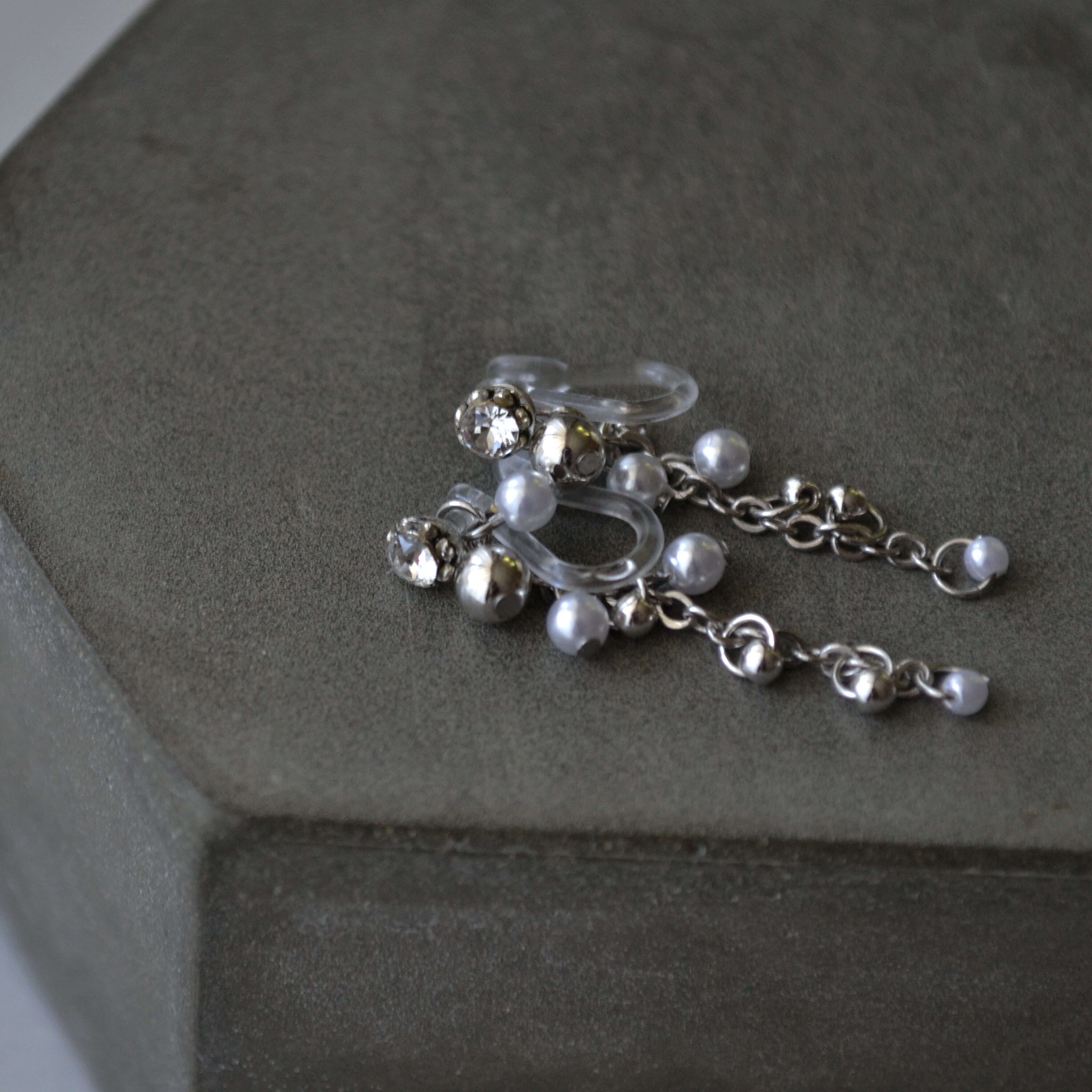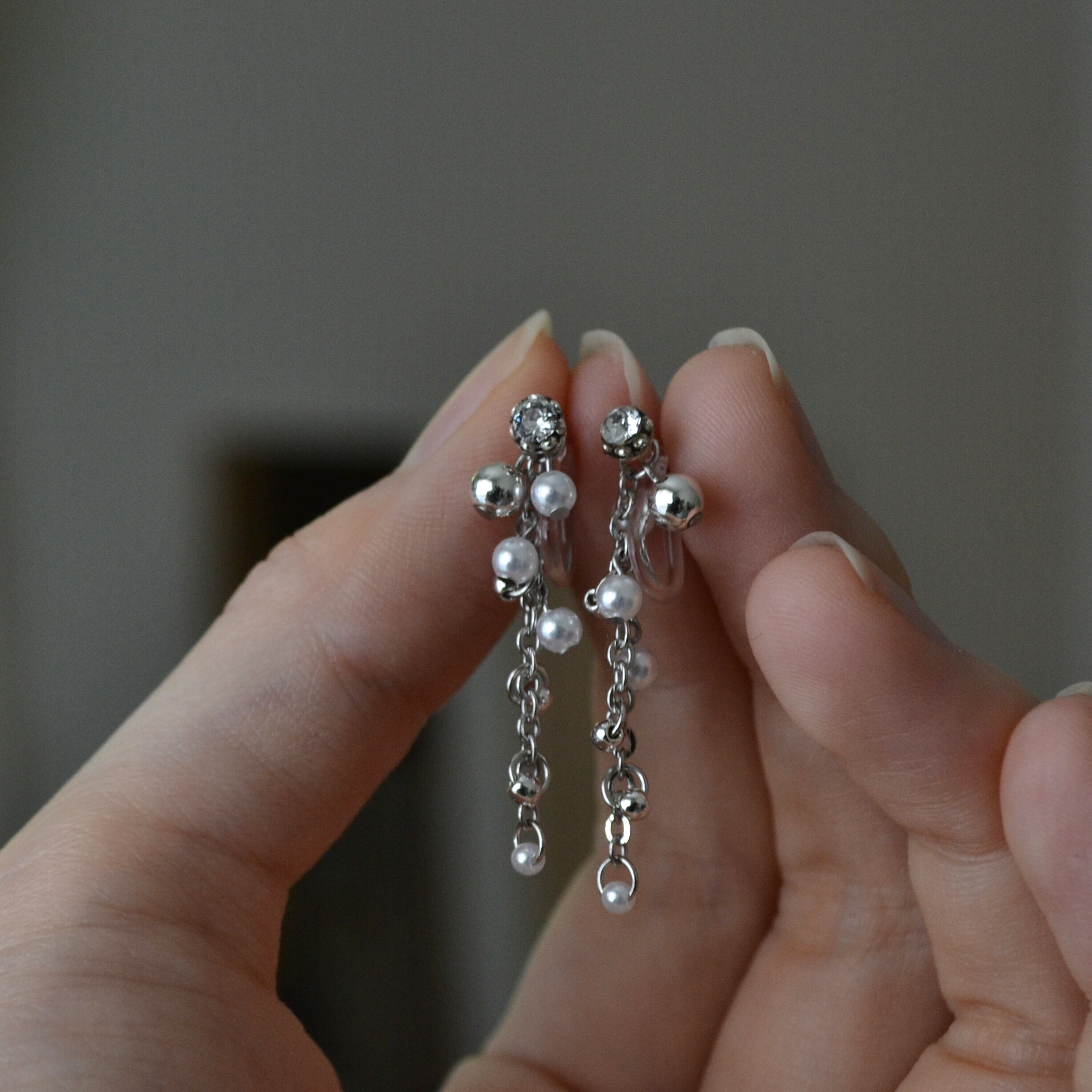 Drops Silver × Pearl Earrings ≈≈ non hole piece