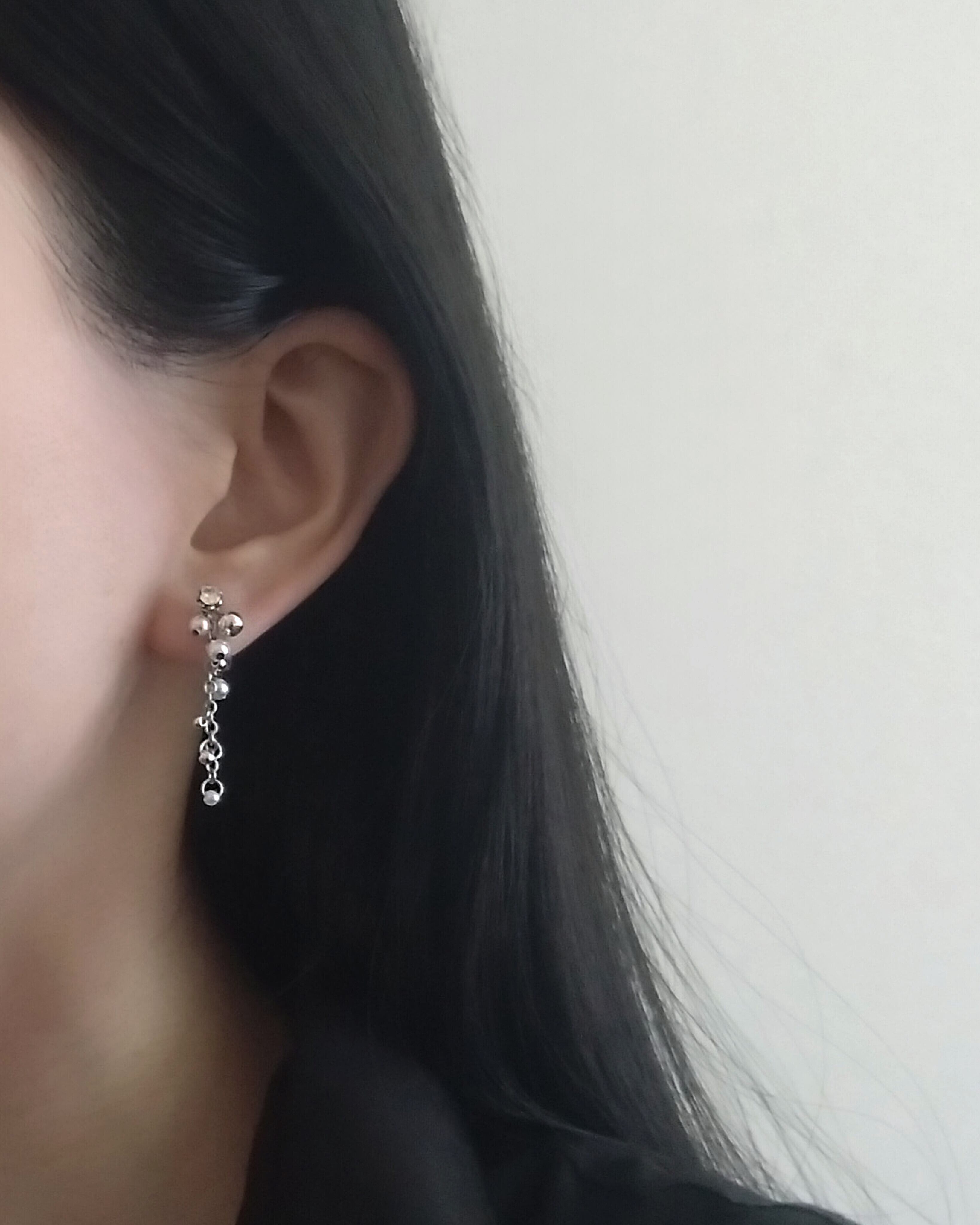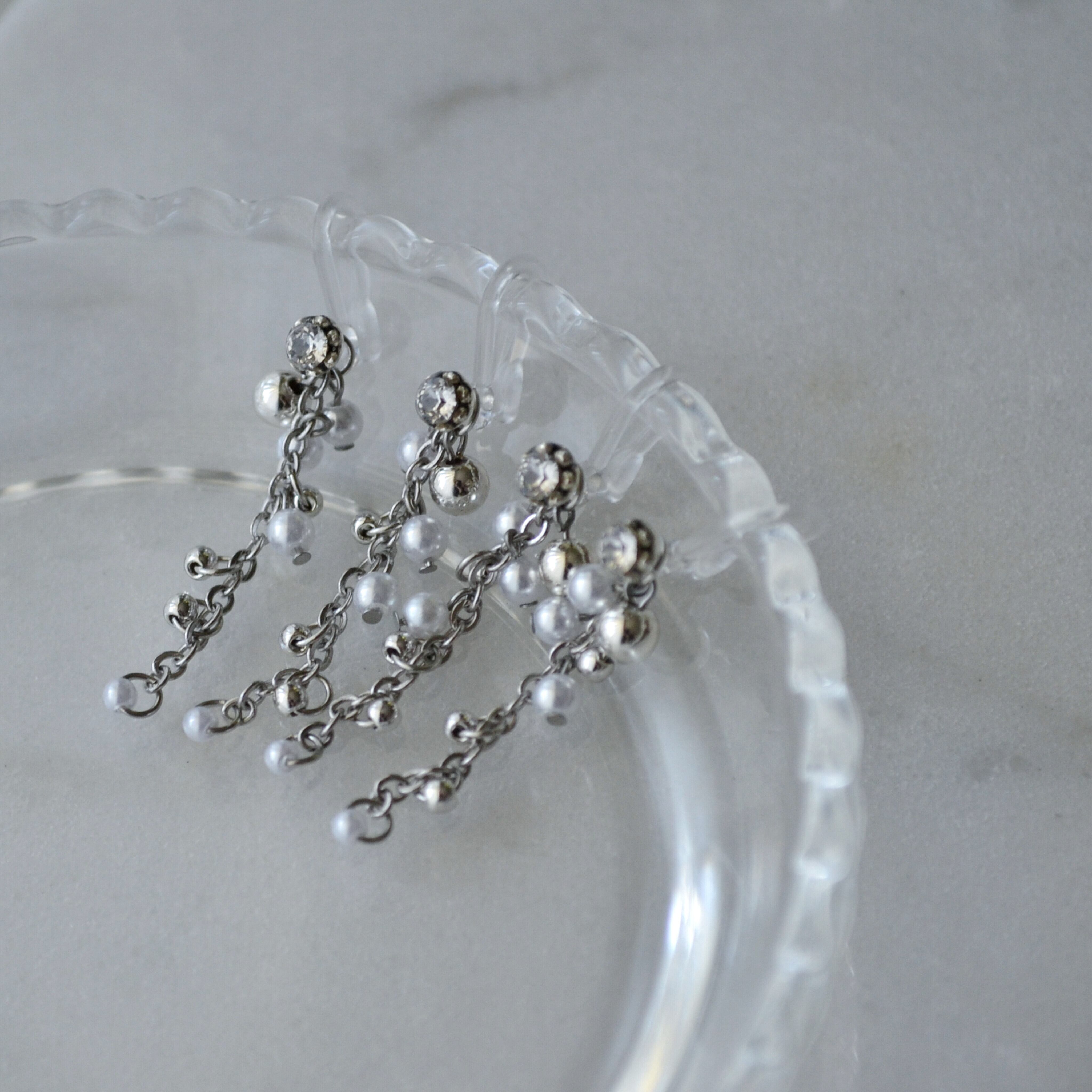 スワロフスキーから水滴が溢れたように連なるパールやシルバーがゆらゆらと