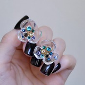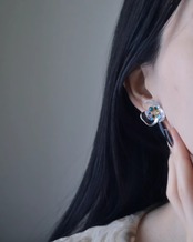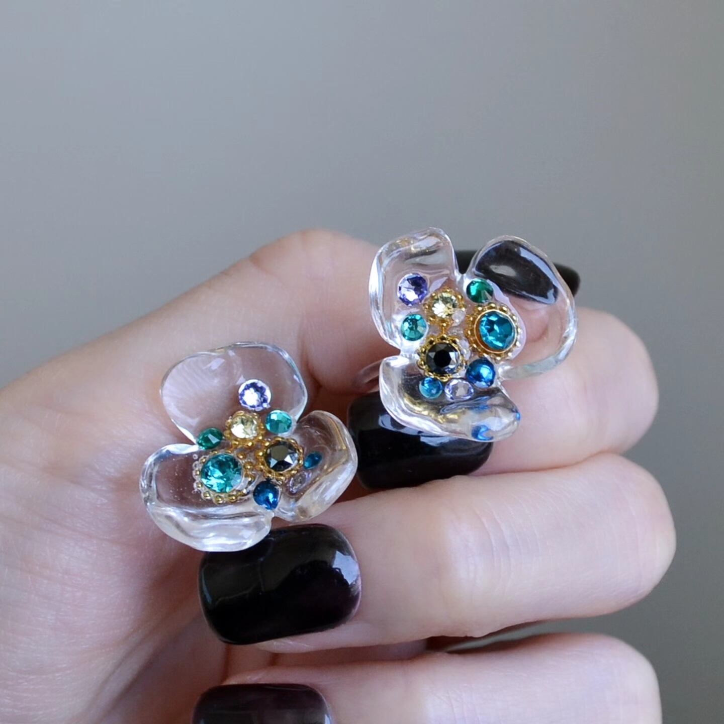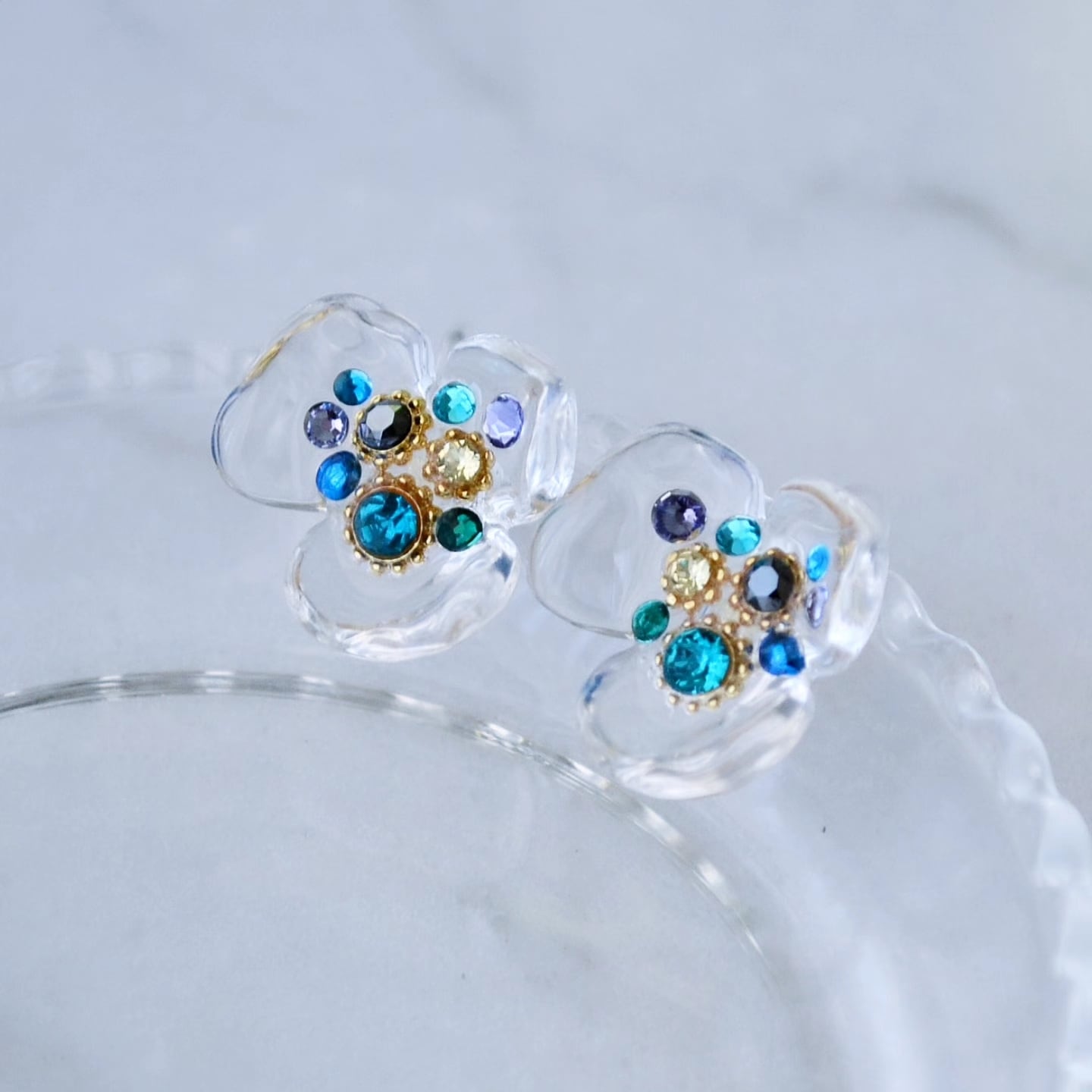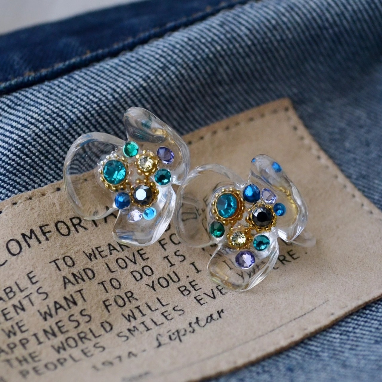 Clear Flower × Blue Jewels スワロをぎゅっと詰め込んだ、ノンホールピアス