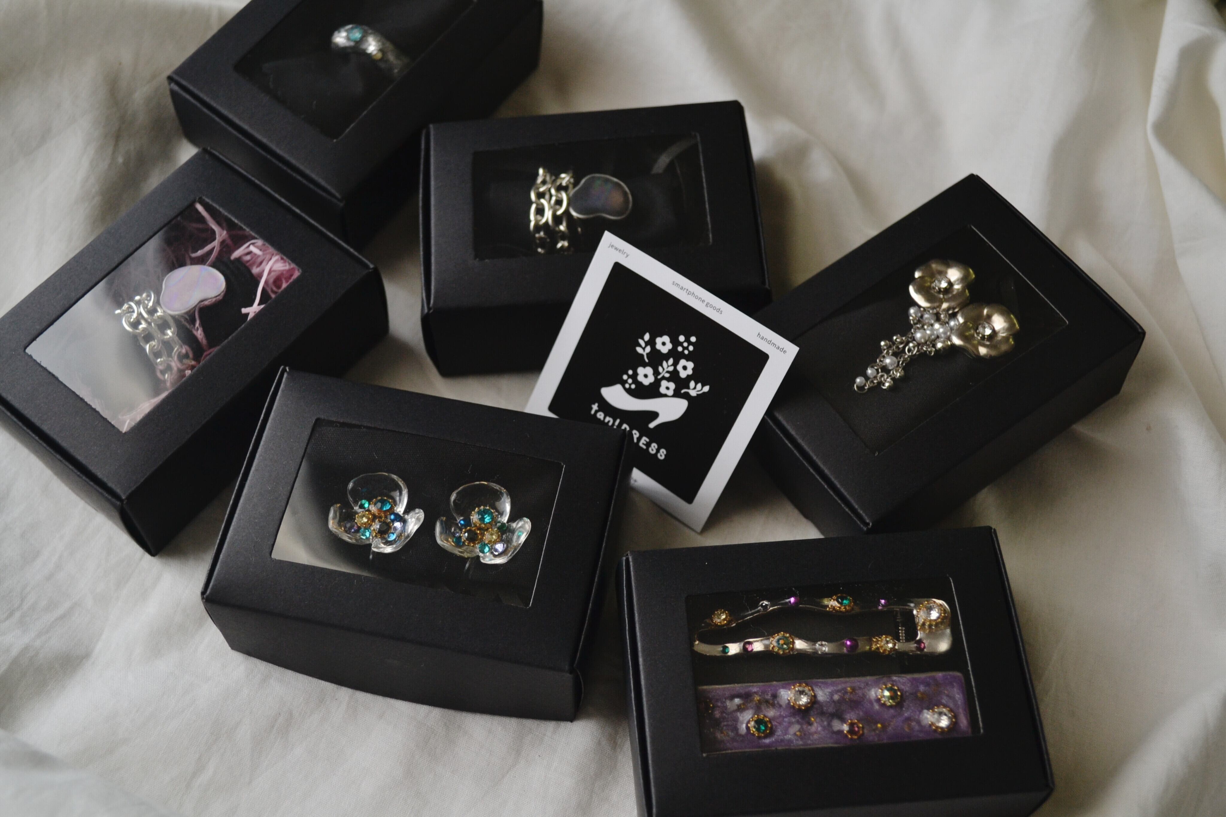 挟む方式のイヤリングですので、ピアス穴がない人でもピアスのように楽しんで頂けます。